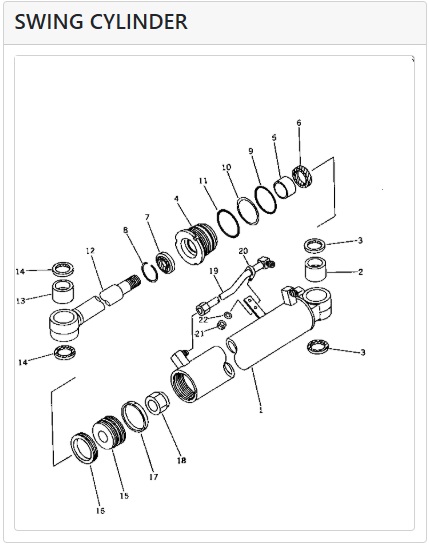 Repair kit for the swing cylinder of KOMATSU excavators.