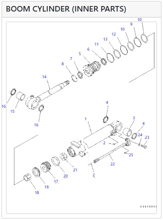 Repair kit for the boom cylinder of KOMATSU excavators.