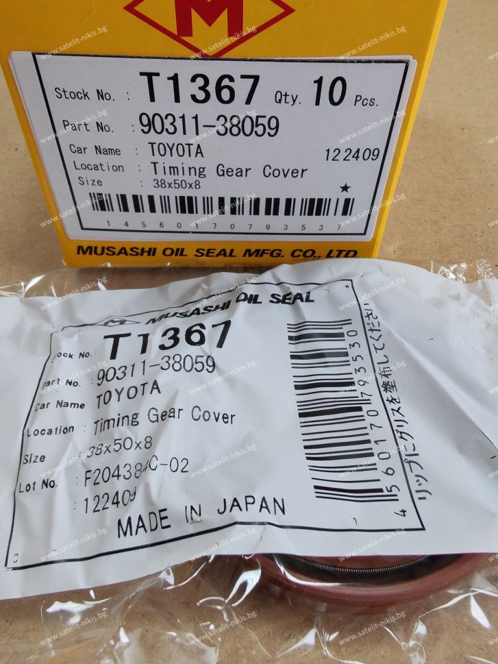 Oil seal UE (AS) 38x50x8 R Brown Silicome Musashi/Japan , for crankshaft (front side) на TOYOTA 90311-38059, 90080-31049,T1367